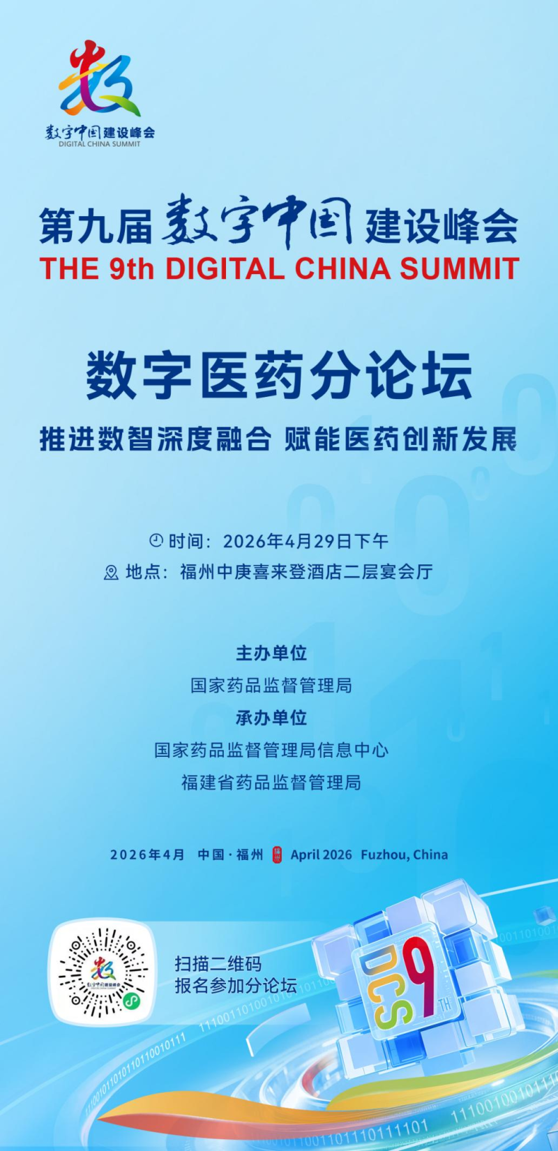 第九届数字中国建设峰会数字医药分论坛将于4月29日下午在福州中庚喜来登酒店举办。作为峰会数字社会板块的重要组成部分,本次论坛由国家药品监督管理局主办,国家药品监督管理局信息中心、福建省药品监督管理局联合承办,以“推进数智深度融合,赋能医药创新发展”为主题,政府代表、院士、行业代表等将出席会议。通过政策发布、成果分享、主旨研讨,共探数智技术与医药行业融合发展的新路径,为医药产业高质量发展注入数字新动能。